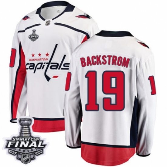 Men's Washington Capitals #19 Nicklas Backstrom Fanatics Branded White Away Breakaway 2018 Stanley Cup Final Champions NHL Jersey