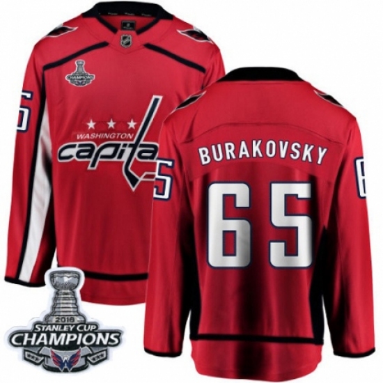 >Youth Washington Capitals #65 Andre Burakovsky Fanatics Branded Red Home Breakaway 2018 Stanley Cup Final Champions NHL Jersey