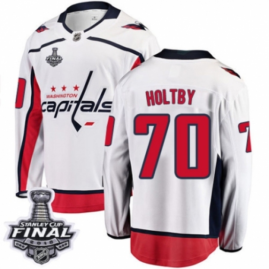 Women's Washington Capitals #70 Braden Holtby Fanatics Branded White Away Breakaway 2018 Stanley Cup Final NHL Jersey