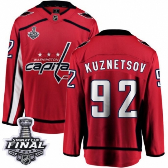Men's Adidas Washington Capitals #92 Evgeny Kuznetsov Authentic Red Home 2018 Stanley Cup Final NHL Jersey