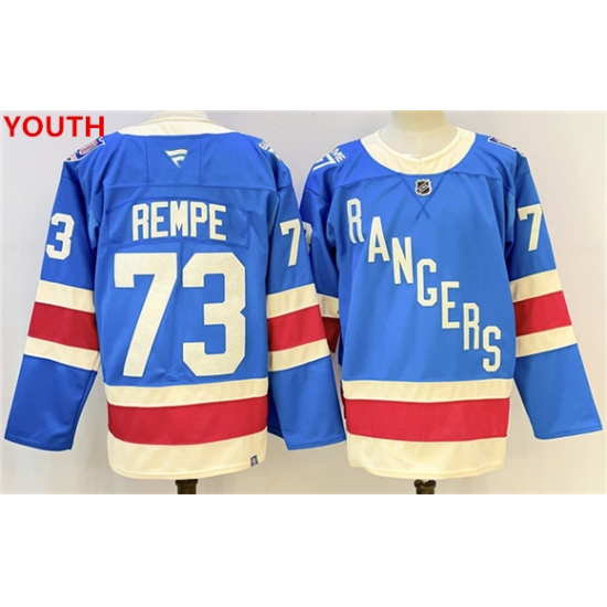 >Youth new york rangers #73 matt rempe blue 2025 stitched hockey jersey