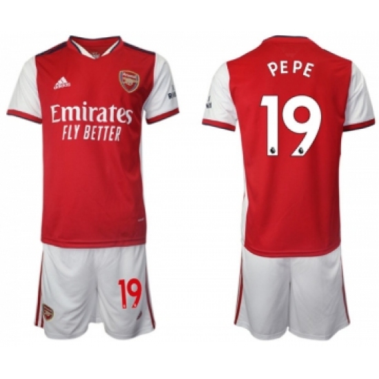 >Arsenal F.C #19 Nicolas Pépé Red Home Soccer Jersey with Shorts