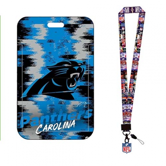 >Carolina Panthers ID Stickers Badge Holder with Lanyard, Hard Plastic Key Card Work Badge Sleeve for Office,