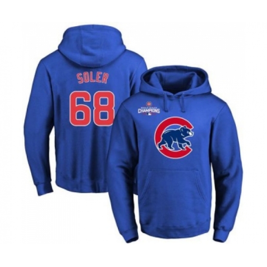 >Cubs #68 Jorge Soler Blue 2016 World Series Champions Primary Logo Pullover MLB Hoodie