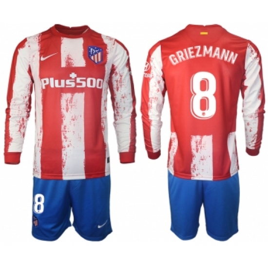 Men 2021-2022 Club Atletico Madrid home red Long Sleeve 8 Soccer Jersey
