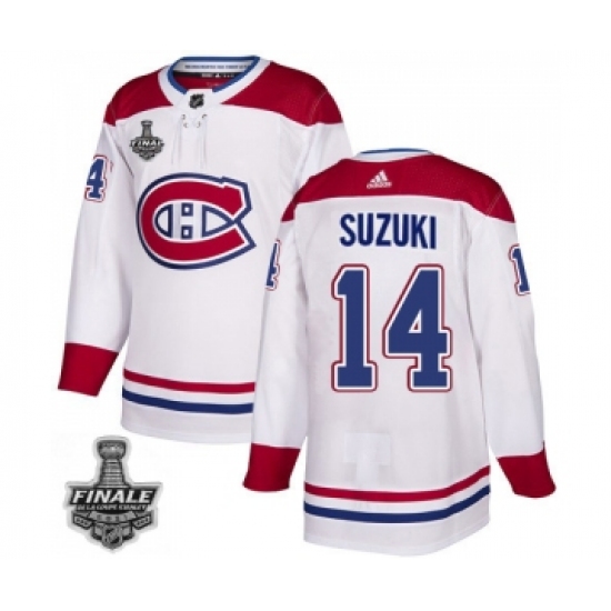 Men's Adidas Canadiens #14 Nick Suzuki White Road Authentic 2021 Stanley Cup Jersey