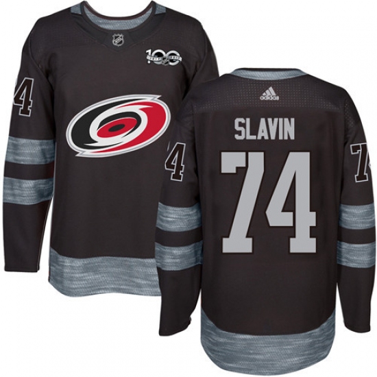 Home>NHL>Carolina Hurricanes>Jaccob Slavin>Men's Adidas Carolina Hurricanes #74 Jaccob Slavin Authentic Black 1917-2017 100th Anniversary NHL Jersey