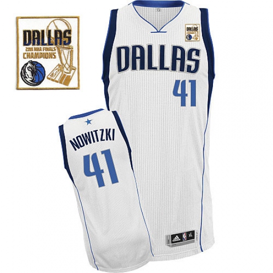 Men's Adidas Dallas Mavericks #41 Dirk Nowitzki Authentic White Home Champions Patch NBA Jersey