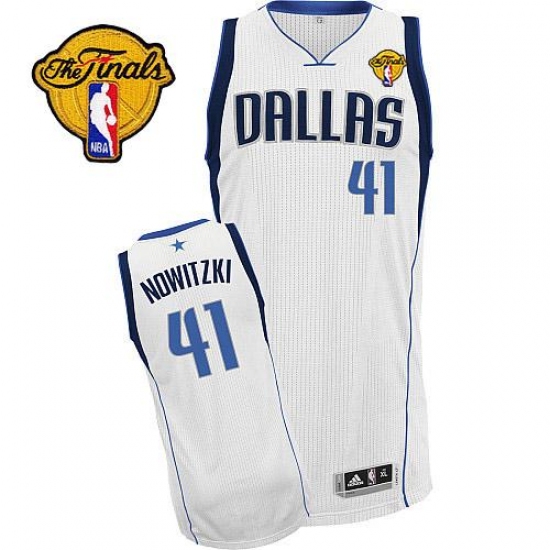 Home>NBA>Dallas Mavericks>Dirk Nowitzki>Men's Adidas Dallas Mavericks #41 Dirk Nowitzki Authentic White Home Finals Patch NBA Jersey