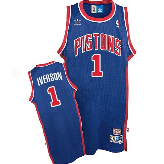Home>NBA>Detroit Pistons>Allen Iverson>Men's Adidas Detroit Pistons #1 Allen Iverson Swingman Blue Throwback NBA Jersey