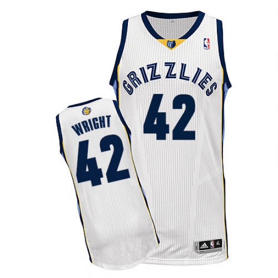 Home>NBA>Memphis Grizzlies>Lorenzen Wright>Men's Adidas Memphis Grizzlies #42 Lorenzen Wright Authentic White Home NBA Jersey