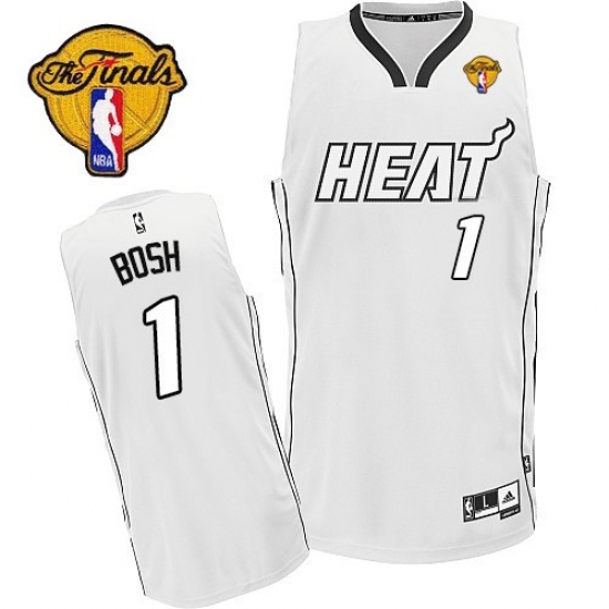 Men's Adidas Miami Heat #1 Chris Bosh Authentic White On White Finals Patch NBA Jersey