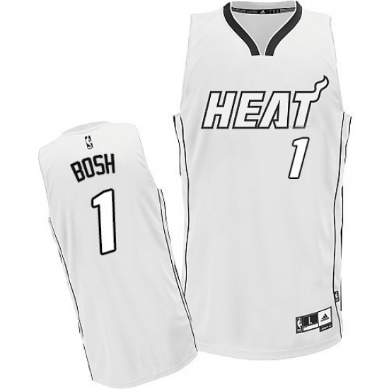 Men's Adidas Miami Heat #1 Chris Bosh Authentic White On White NBA Jersey