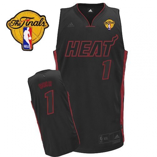Men's Adidas Miami Heat #1 Chris Bosh Swingman Black Black/Red No. Finals Patch NBA Jersey