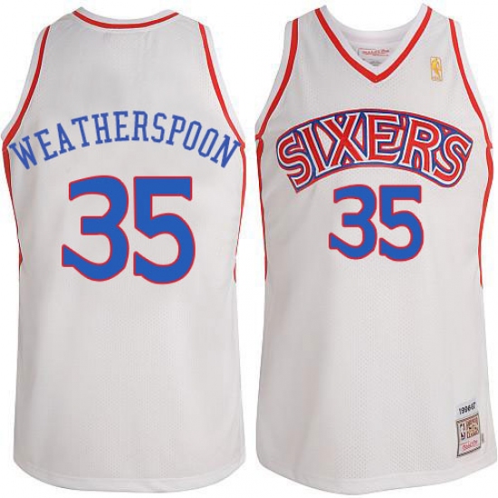Home>NBA>Philadelphia 76ers>Clarence Weatherspoon>Men's Adidas Philadelphia 76ers #35 Clarence Weatherspoon Authentic White Throwack NBA Jersey