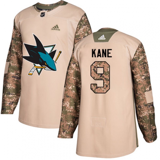 >Men's Adidas San Jose Sharks #9 Evander Kane Authentic Camo Veterans Day Practice NHL Jersey