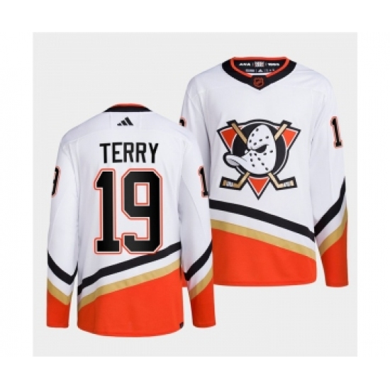 >Men's Anaheim Ducks #19 Troy Terry White 2022-23 Reverse Retro Stitched Jersey