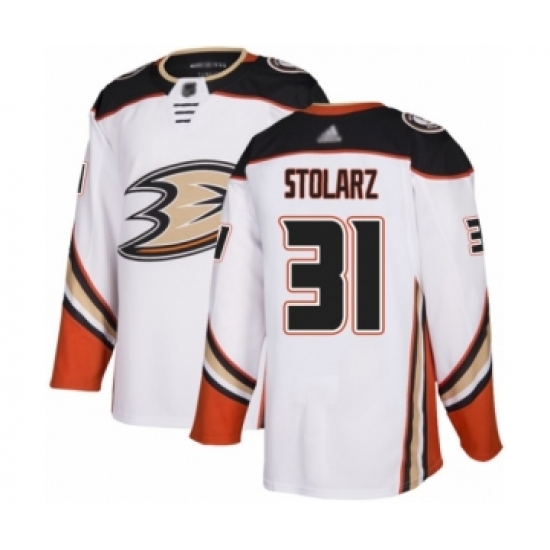 >Men's Anaheim Ducks #31 Anthony Stolarz Authentic White Away Hockey Jersey