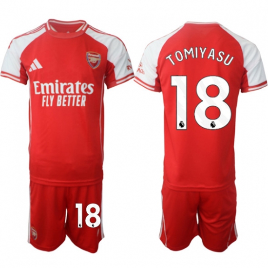 >Men's Arsenal F.C #18 Takehiro Tomiyasu Red 2025 Home Soccer Jersey Suit
