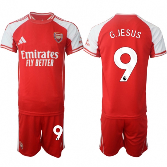 >Men's Arsenal F.C #9 Gabriel Jesus Red 2025 Home Soccer Jersey Suit
