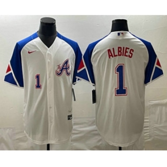 >Men's Atlanta Braves #1 Ozzie Albies Number White 2023 City Connect Cool Base Stitched Jerseys