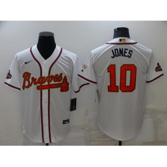 >Men's Atlanta Braves #10 Chipper Jones Nike White 2022 Gold Program Authentic Player Jersey