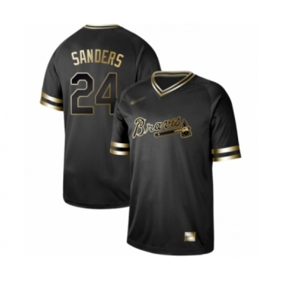 Men's Atlanta Braves #24 Deion Sanders Authentic Black Gold Fashion Baseball Jersey