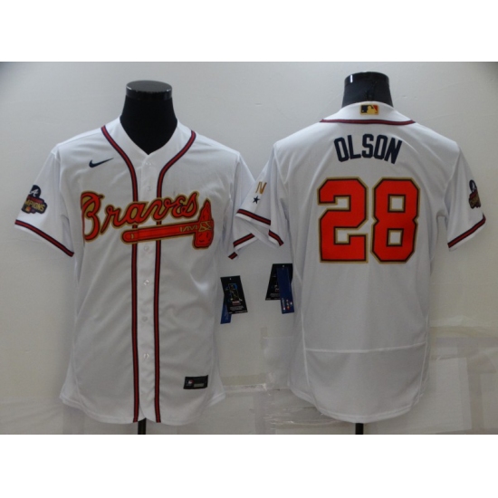 Men's Atlanta Braves #28 Matt Olson White 2022 Gold Program Authentic Player Jersey