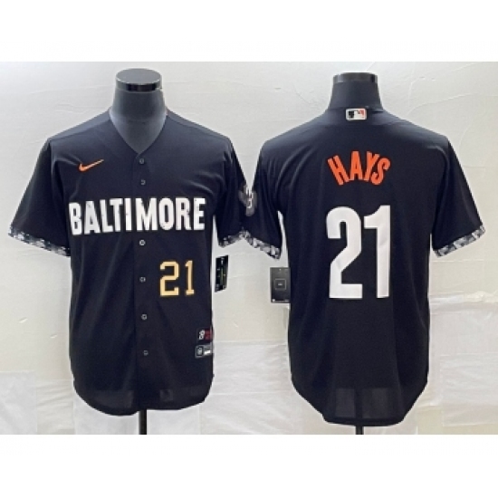 >Men's Baltimore Orioles #21 Austin Hays Number Black 2023 City Connect Cool Base Stitched Jersey