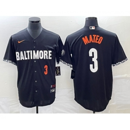 Men's Baltimore Orioles #3 Jorge Mateo Number Black 2023 City Connect Cool Base Stitched Jersey 2
