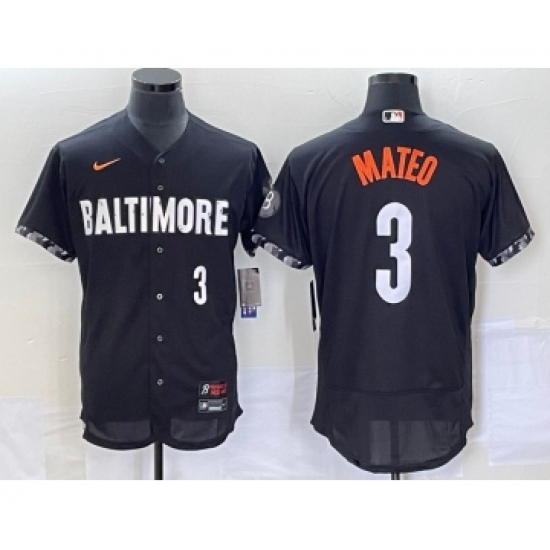 >Men's Baltimore Orioles #3 Jorge Mateo Number Black 2023 City Connect Flex Base Stitched Jersey