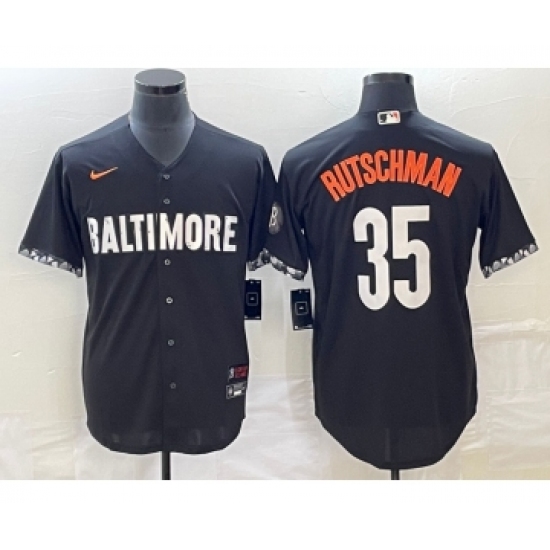 Men's Baltimore Orioles #35 Adley Rutschman Black 2023 City Connect Cool Base Stitched Jersey 1