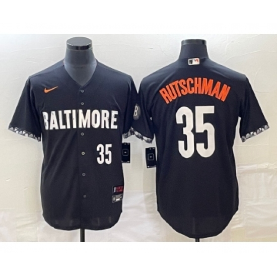 Men's Baltimore Orioles #35 Adley Rutschman Number Black 2023 City Connect Cool Base Stitched Jersey 1