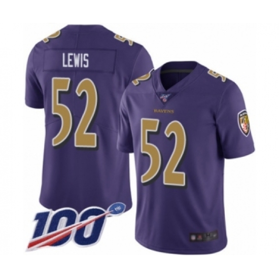 Men's Baltimore Ravens #52 Ray Lewis Limited Purple Rush Vapor Untouchable 100th Season Football Jersey