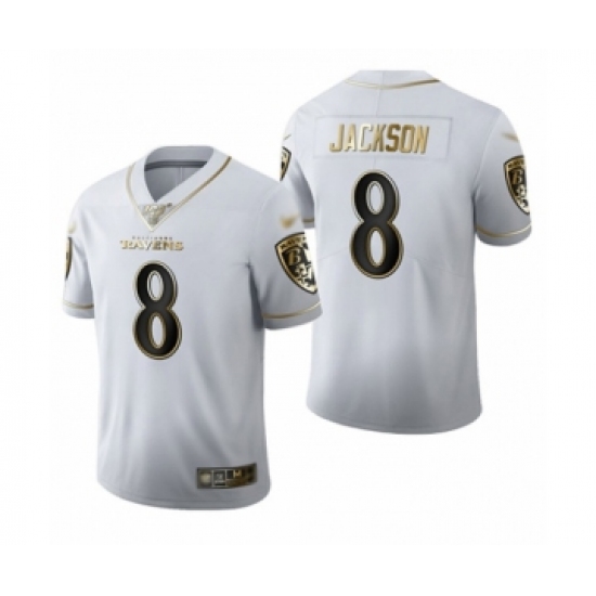 Men's Baltimore Ravens #8 Lamar Jackson Limited White Golden Edition Football Jersey