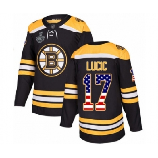 Men's Boston Bruins #17 Milan Lucic Authentic Black USA Flag Fashion 2019 Stanley Cup Final Bound Hockey Jersey