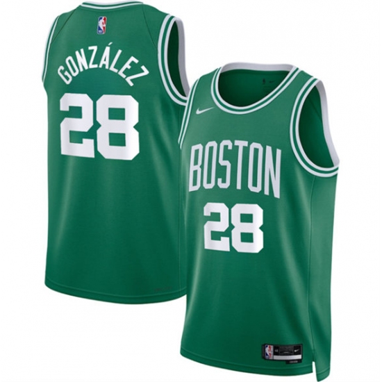 >Men's Boston Celtics #28 Hugo González Kelly Green 2024 Draft Icon Edition Stitched Basketball Jersey