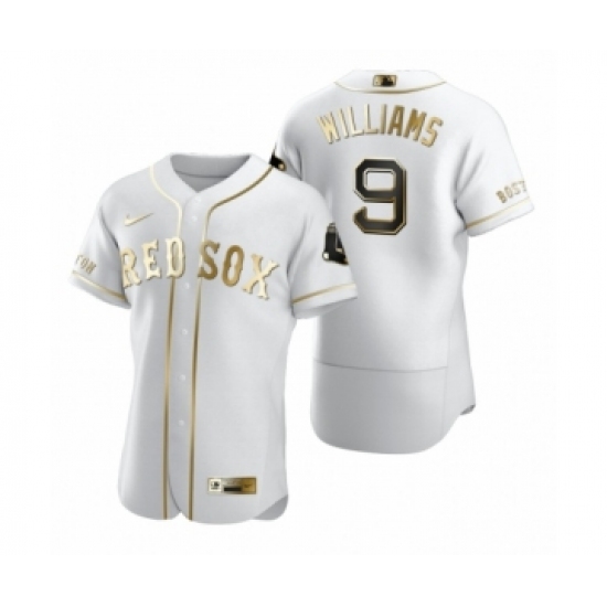 >Men's Boston Red Sox #9 Ted Williams Nike White Authentic Golden Edition Jersey