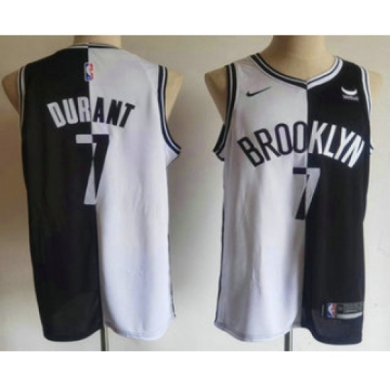>Men's Brooklyn Nets #7 Kevin Durant White Black Two Tone Stitched Swingman Nike Jersey With Sponsor