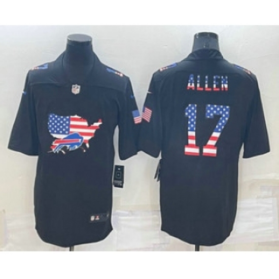 Men's Buffalo Bills #17 Josh Allen 2022 USA Map Fashion Black Color Rush Stitched Nike Limited Jersey