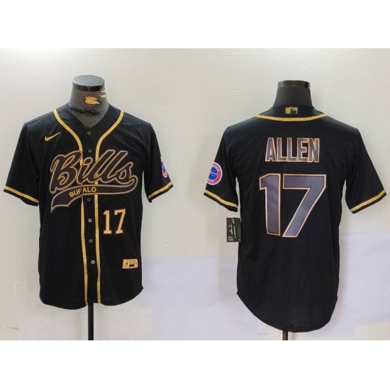 Men's Buffalo Bills #17 Josh Allen Black Gold With Patch Cool Base Stitched Baseball Jersey