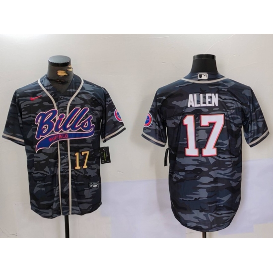>Men's Buffalo Bills #17 Josh Allen Camo Team Cool Base Stitched Baseball Jerseys