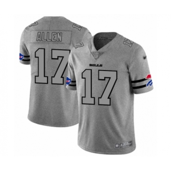 >Men's Buffalo Bills #17 Josh Allen Limited Gray Team Logo Gridiron Football Jersey