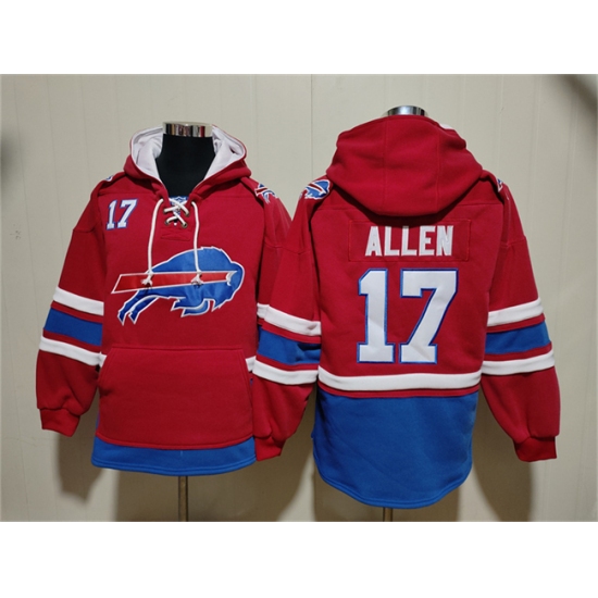 Men's Buffalo Bills #17 Josh Allen Red Ageless Must-Have Lace-Up Pullover Hoodie