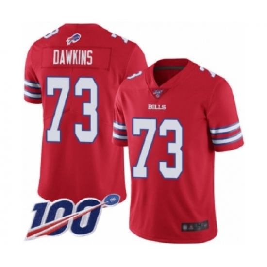 Men's Buffalo Bills #73 Dion Dawkins Limited Red Rush Vapor Untouchable 100th Season Football Jersey