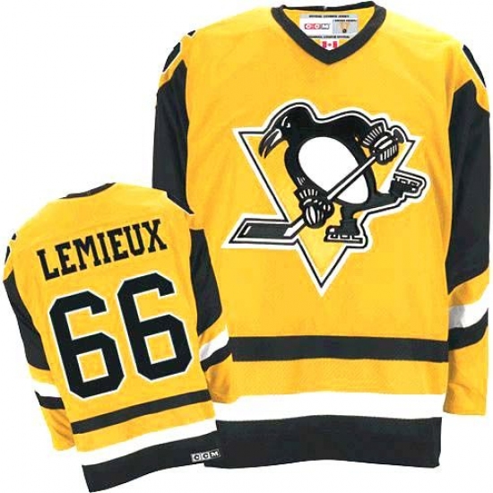 Men's CCM Pittsburgh Penguins #66 Mario Lemieux Authentic Yellow Throwback NHL Jersey