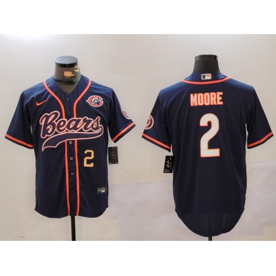 Men's Chicago Bears #2 DJ Moore Navy Throwback With Cool Base Stitched Baseball Jerseys