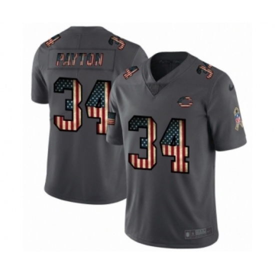 Men's Chicago Bears #34 Walter Payton Limited Black USA Flag 2019 Salute To Service Football Jersey