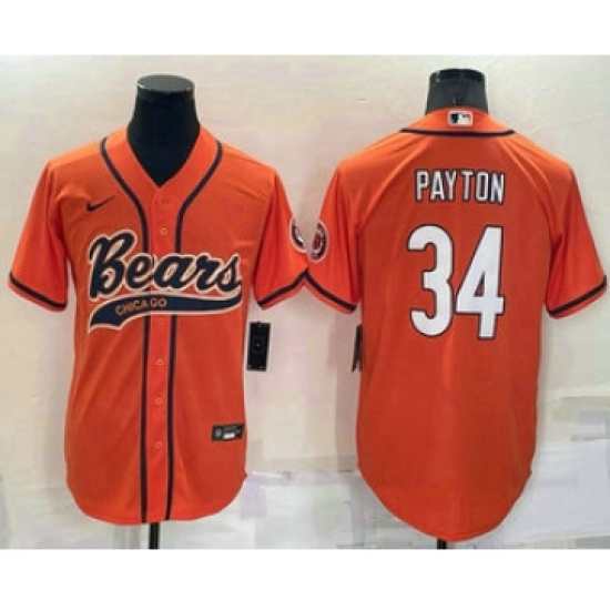 >Men's Chicago Bears #34 Walter Payton Orange Stitched MLB Cool Base Nike Baseball Jersey