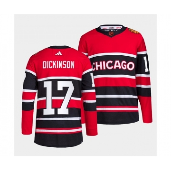 Men's Chicago Blackhawks #17 Jason Dickinson Red Black 2022 Reverse Retro Stitched Jersey